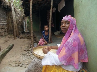Cansada de usar o matagal e sacos de plástico, a família construiu uma casa de banho com uma latrina melhorada. “Nós fizemos o buraco no tempo seco, uma vez que a zona é pantanosa”, conta.