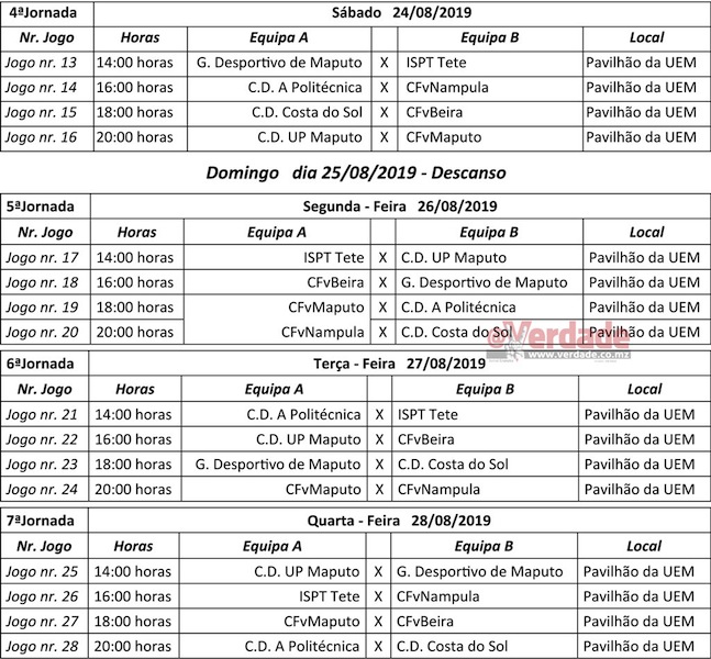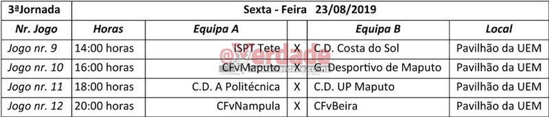 A competição, que decorre no pavilhão da Universidade Eduardo Mondlane teve um dia descanso, nesta quinta-feira (22), mas prossegue na sexta-feira (23) com as seguintes partidas: