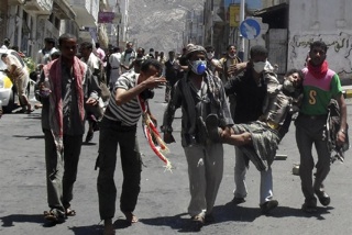 Três pessoas morreram em outras regiões do país, incluindo duas pessoas assassinadas na cidade de Aden, ao sul, quando forças tentaram conter um protesto que exigia o fim do governo do presidente Ali Abdullah Saleh, há 32 anos no poder, disseram testemunhas.