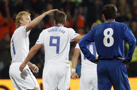 Huntelaar, atacante do Schalke 04, que está em boa forma por seu clube nesta temporada, fez o golo aos 37 minutos do primeiro tempo. “Estou satisfeito com a maneira com que jogamos, mas se você cria nove grandes chances, deve marcar mais que um (golo)”, disse o técnico holandês, Bert van Marwijk, à SBS-TV.