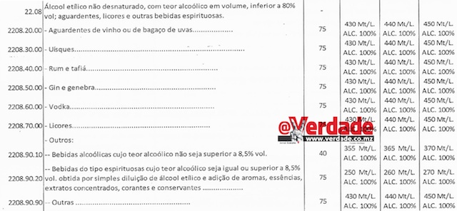 Todas as bebidas que constam na posição Pautal 22.08 vão pagar mais impostos.