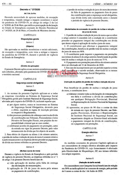 O @Verdade apurou que as empresas a operarem em Moçambique, inscritas ou não no Sistema de Segurança Social Obrigatória, inclusivamente aquelas que sejam alvo de processos de cobrança coerciva, foram bafejadas com benefícios adicionais durante o Estado de Emergência e durante a vigência do Decreto nº 37/2020.