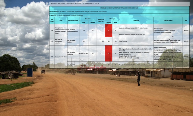 Com fundos condicionados pelas dívidas ilegais da Proindicus, EMATUM e MAM o Executivo propôs-se em 2019 a realizar a manutenção de 1.000 quilómetros de estradas distritais contudo, no Balanço do 1º semestre do Plano Económico e Social (PES), indica terem sido mantidos 97 quilómetros em todas províncias e não perspectiva novas manutenções para o semestre em curso.