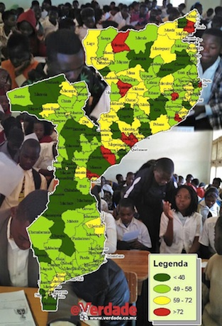 Oficialmente em Moçambique existe um professor para cada turma de 62 alunos. O Plano Quinquenal do Governo(PQG) de Filipe Jacinto Nyusi propôs-se a reduzir esse rácio para uma média de 57 alunos por turma. Porém o @Verdade descobriu cinco escolas na província do Niassa onde cada turma tem mais de 100 alunos, numa delas, do ensino secundário, encontramos 173 alunos a tentarem estudar a oitava classe. Paradoxalmente, para colmatar o défice de mais de 32 mil salas de aulas no país, o PQG propõe construir somente 4.500 novas salas até 2019.