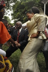 O acto (inédito) teve lugar após o buffet que o chefe do Estado ofereceu aos convidados à cerimónia havida na Praça da Independência pela passagem dos 25 anos da tragédia de Mbuzine, na qual pereceu o primeiro Presidente de Moçambique independente, Samora Machel, e da inauguração da estátua construída em sua homenagem.
