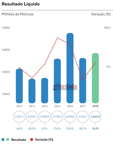 Desse lucro o Conselho de Administração, dirigido por Pedro Couto, decidiu que 3,3 biliões Meticais ficariam como Resultados Transitados e 1,3 bilião de Meticais serão pagos em dividendos aos seus accionistas.