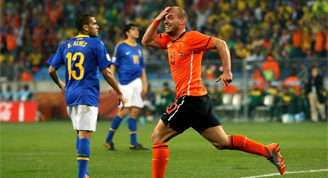 Felipe Melo marcou um golo na própria baliza aos 52 minutos e Wesley Sneijder, de cabeça, fez o resultado de 2 a 1 que sentenciou a eliminação da equipa de Dunga, na mesma fase em que o pais caíra na Alemanha 2006.
