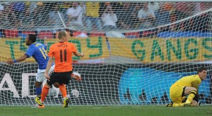 Felipe Melo marcou um golo na própria baliza aos 52 minutos e Wesley Sneijder, de cabeça, fez o resultado de 2 a 1 que sentenciou a eliminação da equipa de Dunga, na mesma fase em que o pais caíra na Alemanha 2006.
