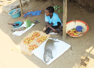 Sentada à beira da EN1 e com um olhar tímido, a rapariga de 11 anos de idade vende porções de tomate e uma enorme ratazana. O fruto, conta, colheu na pequena horta que existe a alguns metros do quintal da sua casa e o animal, que está a ser comercializado ao preço de 200 meticais, foi capturado pelo seu progenitor. Ela frequenta a quarta classe.
