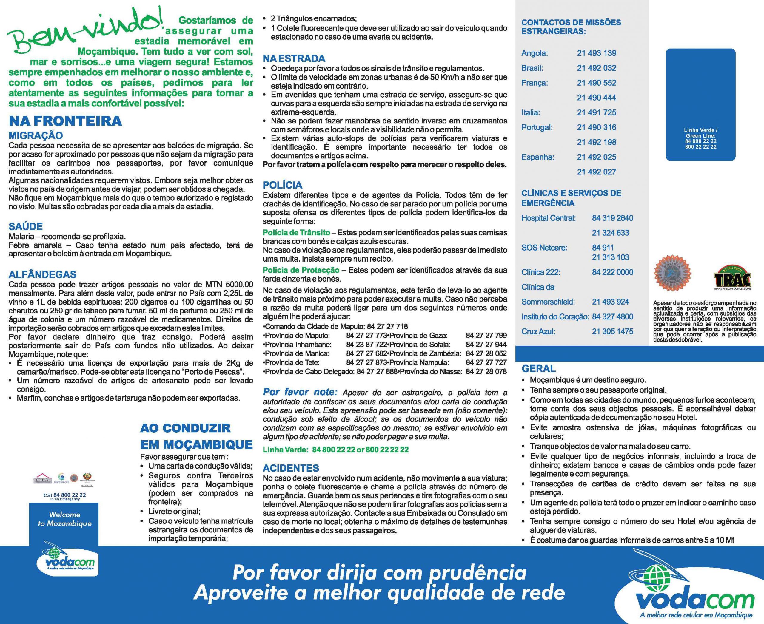 O referido desdobrável, quem aqui publicamos, é bilingue e tem por objectivo informar ao turista sobre os seus direitos e obrigações durante o período de permanência no território nacional, no concernente à actuação da Polícia (Protecção , e Trânsito), movimento migratório e outras informações relevantes.