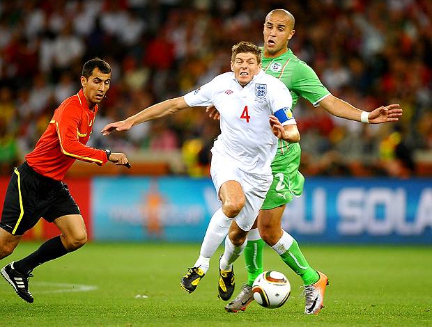 A Inglaterra tentava tomar a iniciativa, mas esbarrava na boa marcação da Argélia, que alinhou três defesas, com Bougherra colado em Rooney, Yahia vigiando Heskey de perto e de sobra, Halliche limpava a área. Sem criatividade, com Gerrard falhando passes simples e Lampard tocando apenas de lado, os dois atacantes ficaram completamente isolados. A bola vinha mais pelo ar e a defesa argelina levou a vantagem na maioria das vezes.