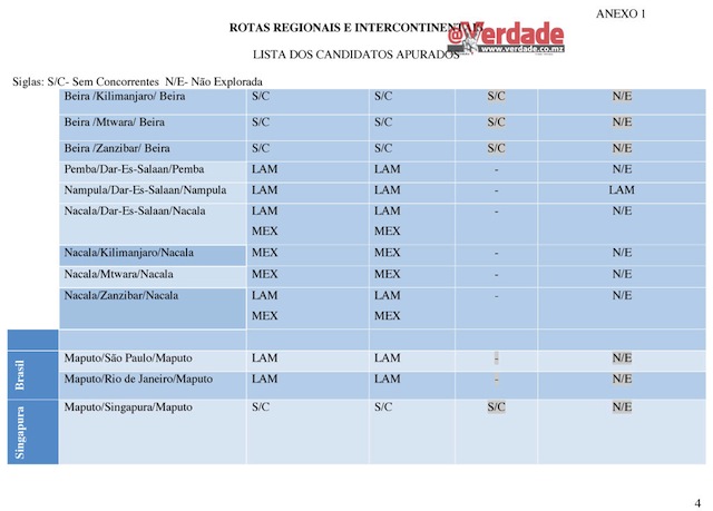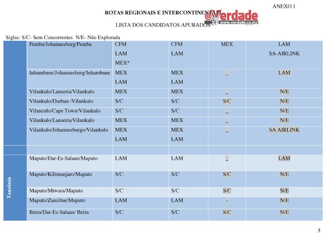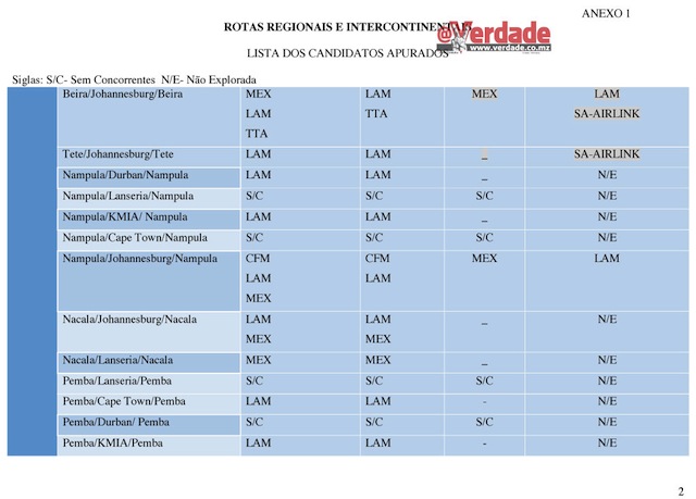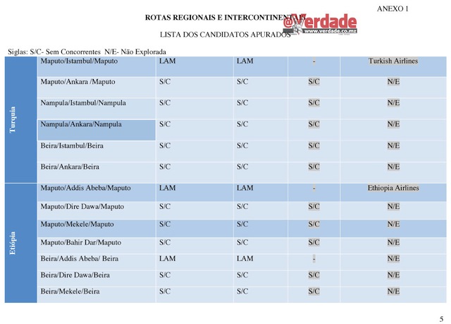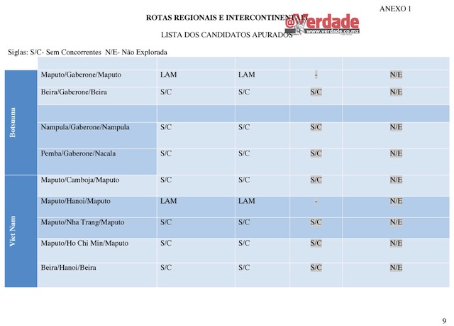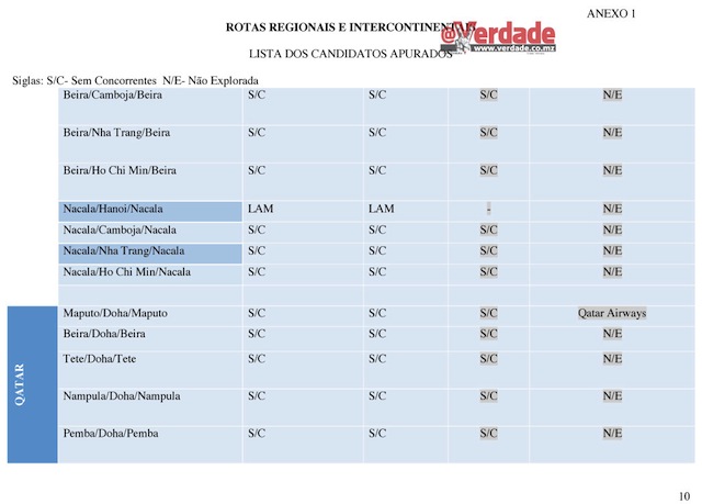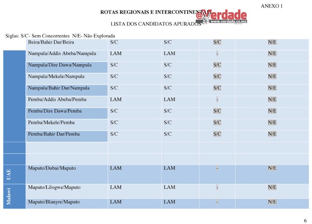 Entretanto o @Verdade descortinou que também não foi disponibilizada neste concurso público a rota Maputo – Lisboa – Maputo que é operada exclusivamente pela Transportadora Aérea Portuguesa(TAP).