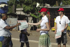 No último sábado, @ VERDADE contou com uma distribuidora especial. Tratou-se de Margarida Rebelo Pinto, a nossa mais recente colaboradora e dona da coluna “A ntyiso wa wansati” (A Verdade da Mulher), espaço situado na página da Mulher. Margarida Rebelo Pinto, a escritora que mais livros vende em Portugal – cerca de 100 mil por ano – esteve de férias no nosso país e aproveitou tanto para conhecer as nossas mais belas praias como os nossos bairros mais desfavorecidos enquanto distribuía @ VERDADE. Ao entregar o nosso jornal, Margarida teve as reacções mais díspares dos nossos leitores: houve quem não acreditasse que era a mesma “senhora” da fotografia da página 26; houve quem dissesse “saiu bem aqui”; houve quem a tivesse pedido em casamento; houve quem lançasse sonoras gargalhadas e houve ainda quem dissesse que a conhecia mas que não sabia de onde. Talvez da foto da sua coluna no jornal? Na Panificadora 25 de Junho deram-lhe três pães cacetes e não a deixaram pagar com o argumento de que se @ VERDADE era mahala o xipauana (pão) também tinha de o ser. No final a nossa colunista classificou a experiência de “fantástica” e que a mesma constituía um enorme incentivo para a sua escrita.