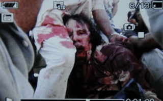 Da NATO veio já a confirmação oficial de que os seus aviões atacaram uma coluna motorizada à saída de Sirte, pelas primeiras horas da manhã de hoje, mas sem admitir nem rejeitar que Khadafi se encontrava em algum dos veículos atingidos no raide aéreo. A televisão líbia Al-Ahrar difundiu uma imagem como sendo do cadáver de Khadafi, com o tronco e cabeça ensanguentados e os olhos abertos, rodeado por outras pessoas.