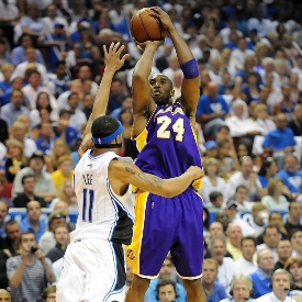 O último jogo da série contra os Magic teve um primeiro quarto equilibrado, e só. As duas equipes começaram por dividir bem o ataque e, actuando em casa, os Orlando conseguiram manter uma vantagem de dois pontos após os 12 minutos iniciais. Daí em diante, Kobe começou a tomar o controle da partida. No intervalo, ele já tinha 15 pontos, e os Lakers lideravam por 56 a 46.