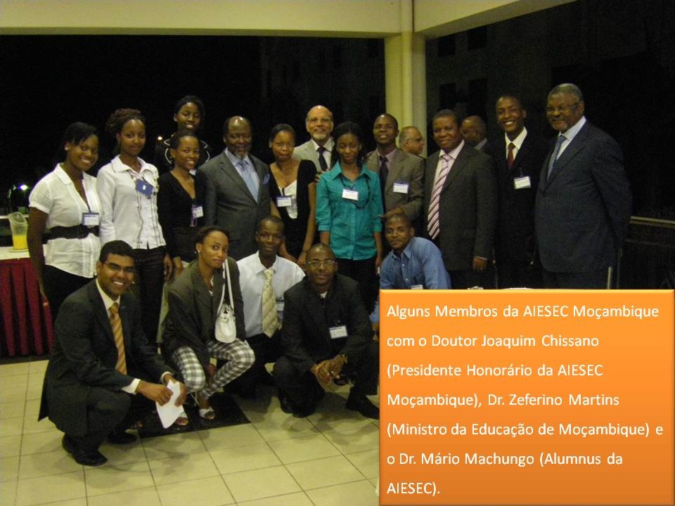 “A experiência da AIESEC em estimular liderança nos jovens, habilidades multifuncionais, autoconhecimento, eficiência e habilidade de pensar globalmente e aplicar localmente, constitui para o país um valor acrescentado tendo em conta que o povo moçambicano elegeu a pobreza como o alvo a combater” defendeu. A associação em Moçambique tem como presidente honorário o antigo Presidente da República, Joaquim Chissano, que durante a cerimónia referiu que “os jovens moçambicanos devem estar preparados para uma competitividade não só a nível nacional e regional, mas também ao nível global, daí a importância das organizações internacionais como a AIESEC se implantarem no país”.