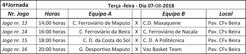 Com apenas três jornadas disputadas tudo ainda está em aberto nesta fase regular, que está a ser jogada no sistema de todos contra todos em uma volta, no pavilhão dos “locomotivas” da Beira até ao dia 11 de Agosto, pois repartem o 2º lugar com os anfitriões o Ferroviário de Maputo, o Ferroviário de Nacala e A Politécnica todas equipas com 5 pontos, existindo apenas quatro lugares nas meias-finais.