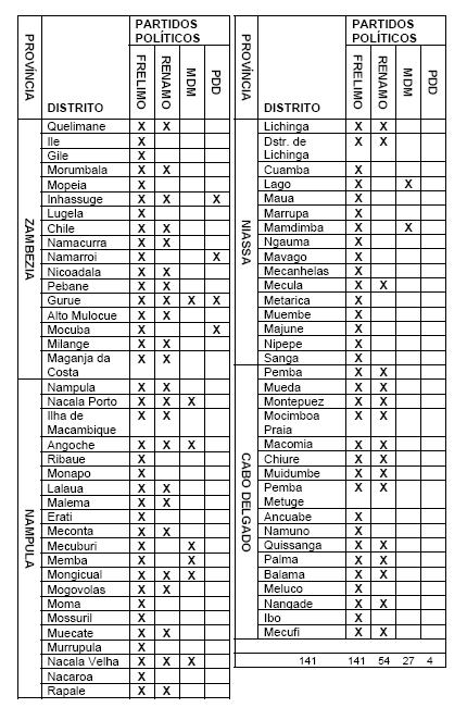 Veja aqui as listas corrigidas dos partidos e círculos para assembleias provinciais :