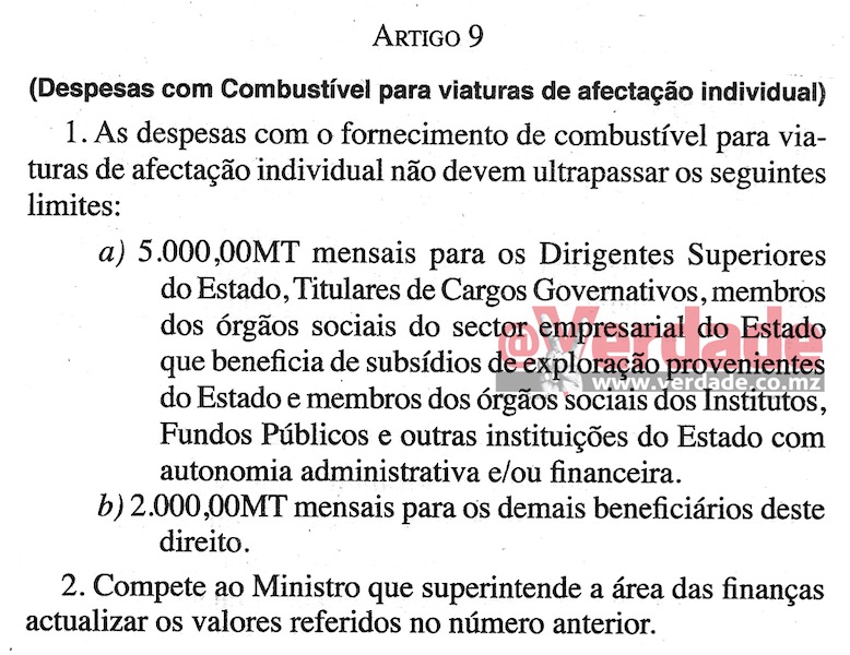 Ademais a maioria das instituições do Estado nem sequer abastece nas bombas de combustível públicas portanto quem garante que a viatura de afectação individual do “chefe” não irá também ser abastecida?