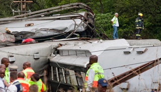O camião ficou partido pelo meio com o impacto, e as equipes de emergência encontraram feridos no meio dos mortos.