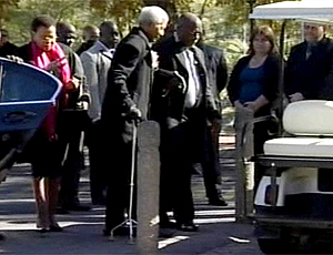 O ex-presidente sul-africano e Prémio Nobel da Paz, Nelson Mandela, de 91 anos, assistiu esta quinta-feira, em Johannesburgo, ao funeral da sua bisneta de 13 anos morta num acidente de carro na sexta-feira passada, dia da abertura do Mundial. Mandela, que fará 92 anos em 18 de julho, sentou-se – com a ajuda de colaboradores – na primeira fila da capela do colégio St. Stithian, onde a adolescente estudava. A sua esposa, Graça, ficou ao lado dele.
