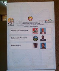 A votação do dia 20 de Novembro, e o apuramento dos votos nos 53 municípios foi manchada por tentativas de fraudes, e até de fraude consumada, a favor dos candidatos do partido Frelimo. Ainda na véspera da votação foram encontrados jovens menores de 18 anos na posse de cartões de eleitores. Eles foram aliciados com a promessa de passagem de classe caso votassem no candidato do partido Frelimo no município de Angoche. Dezenas destes jovem exerceram ilegalmente o direito de votar.