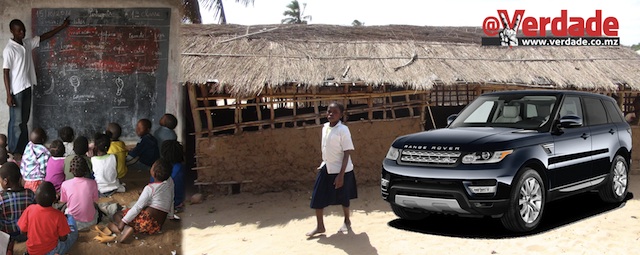 A Direcção de Educação e Desenvolvimento Humano do Niassa comprou, em finais do ano passado, 1650 carteiras duplas e ainda 66 secretárias e cadeiras para os distritos de Cuamba, Mecanhelas, Metarica, Maúa e Nipepe pelo custo de 6.921.484 meticais. O Ministério da Economia e Finanças está a comprar, entre outras “viaturas protocolares de campo”, um Land Rover Discovery SDV6 HSE pela módica quantia de 7.974.999,99 meticais.