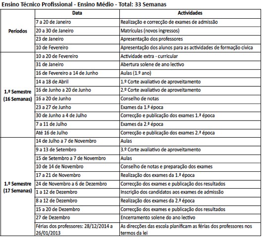 Refira-se que durante o período em que os instruendos estarão a observar uma interrupção lectiva os professores continuarão em actividade, pois ocupar-se-ão de registos de notas nas cadernetas e cadastros dos alunos, análise do aproveitamento pedagógico, dentre outras acções curriculares.