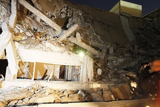 Um prédio administrativo do complexo residencial do líder líbio, Muamar Khadafi, foi atingido por um míssil e destruído este domingo no bairro de Bab el Aziziya, em Trípoli. O prédio, situado a cerca de 50 metros da tenda onde Kadafi recebe geralmente seus convidados importantes, ficou totalmente destruído.