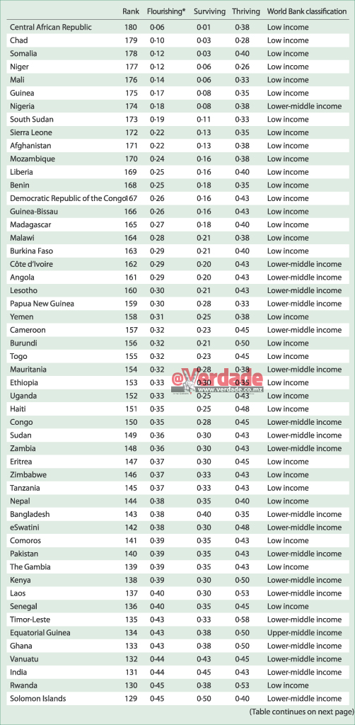 O relatório, intitulado “A Future for the World’s Children?”, inclui um novo índice global de 180 países, comparando o desempenho no desenvolvimento de crianças, incluindo medidas de sobrevivência e bem-estar infantil, como saúde, educação e nutrição; sustentabilidade, com um proxy para emissões de gases de efeito estufa, e equidade ou diferenças de renda onde Moçambique figura na posição 170.