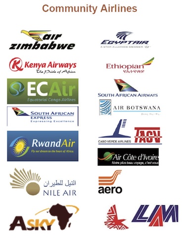 Além das gigantes Ethiopian Airlines, Kenya Airways e South African Airways estão designadas a voar do Mercado Único de Transporte Aéreo Africano, até a data, as LAM, a Egyptair, a e South African Express, a Air Zimbabwe, a Equatorial Congo Airlines, a Air Botswana, a RwandAir, a Cabo Verde Airlines, a Air Cote d´Ivoire, a Nile Air, a Aero e a Asky.