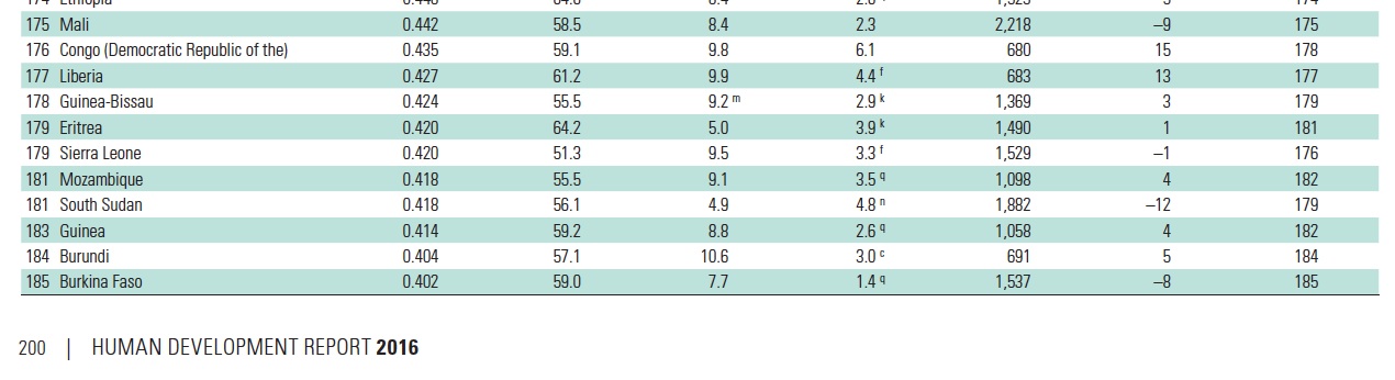 Piores que o nosso País só mesmo a República Centro-Africana, o Níger, o Chade, o Burkina Fasso, o Burundi, a Guiné e o Sudão do Sul.