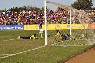 O Maxaquene defendia como podia e, no minuto 90, Daínho flectiu pela direita e cruzou para a grande área onde Dário Khan, no meio de dois defesas, rematou fraco para uma intervenção segura de Sozinho.
