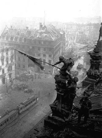 A foto tornou-se símbolo da derrota do Terceiro Reich de Adolf Hitler. A imagem é comparada, com frequência, com a fotografia que mostra seis soldados americanos fincando a bandeira estrelada em fevereiro de 1945 na Ilha de Iwo Jima no Japão.