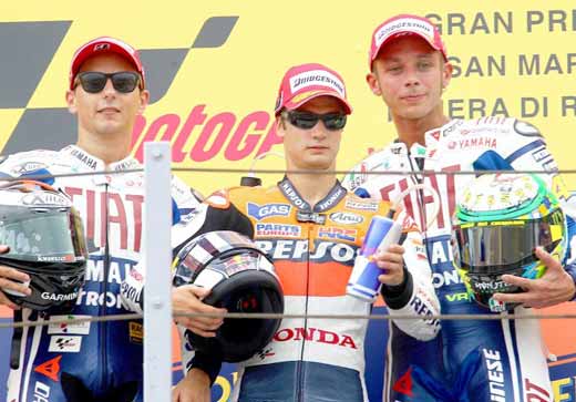 Atrás deles, Valentino Rossi a e Casey Stoner lutavam pelo lugar mais baixo do pódio, com os dois pilotos a trocarem de posição várias vezes, até que Rossi, finalmente passou para a frente do australiano para não mais perder a posição até final. Stoner foi perdendo gás e foi mesmo passado por Andrea Dovizioso, que ficaram classificados no frente dos homens da Monster Yamaha Tech 3, Ben Spies e Colin Edwards, sexto e sétimo.