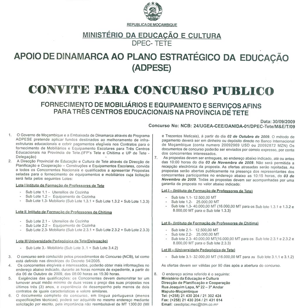 NCB: 24/UGEA-CEEDANIDA-01/DPEC-Tete/M&E/T/09
