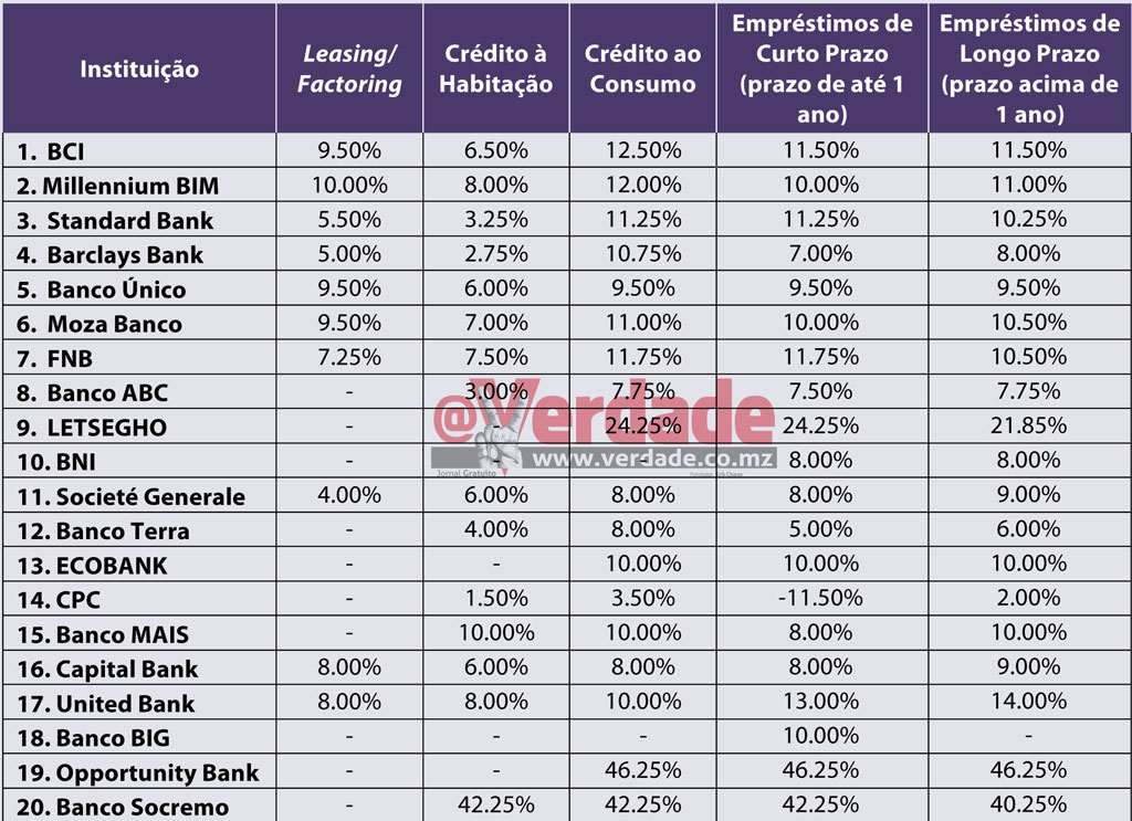 Com esses spreads os dois bancos comerciais que dominam o mercado moçambicano, o Banco Comercial e de Investimentos (BCI) e o Millenium Bim (MBim), continuam a ter taxas de juro acima dos 30 por cento nos seus produtos de crédito.