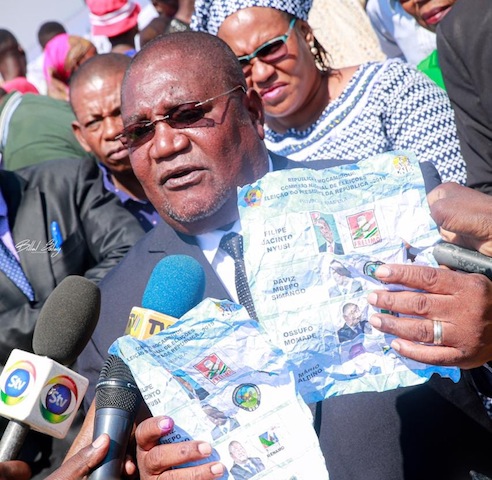 “O número total de votantes foi de 6.679.008 eleitores, o que corresponde a participação de 50,74 por cento. O candidato Filipe Jacinto Nyusi obteve neste agregado geral 73 por cento dos votos, o candidato Daviz Mbepo Simango obteve 4,38 por cento do total de votos, o candidato Ossufo Momade obteve 21,88 por cento e o candidato Mário Albino obteve 0,73 por cento do total de votos”, anunciou o presidente da CNE, Abdul Carimo Sau.