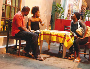 Entre bebidas e sopas, conversas fiadas e próprias de gente que perdeu a noção e rumo da vida, o interior do bar está infestado de fumaça: as quatro, oito talvez mais mulheres que aindam sobram são prostitutas assumidas e alcóolatras incorrigíveis. Sempre com cigarros entre a mão e a boca. Bastou, então, que alguém reclamasse do fumo e relembrasse a lei que restringe o seu consumo em recintos fechados, para, mais uma vez, se revelar que aquele é o reino onde só a lei da selva tem espaço: “O quê? Você quem é aqui para falar de fumo? Você vai ver, essa sua mania de civilizado vai acabar hoje!”. O jovem a quem se dirigiram as trabalhadoras de sexo, apressou-se a acabar a sua cerveja e a dispedir-se, em voz baixa: “ mano, já vou partir.”