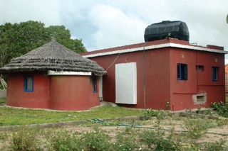 Lá está a casa ‘por enquanto’, assim lhe chamava o mestre, enquanto a outra, a grande ao lado, ainda não estava pronta. Foi aqui que Malangatana passou muito tempo, a pintar, a cantar, a brincar, a conviver. Dois quartos circulares com uma sala pelo meio e uma pequena casa de banho completam o espaço. No interior, tudo está como o mestre deixou. “Esta escultura fui eu que fiz”, refere, orgulhosamente, Mundau, apontando para um busto de madeira curvilíneo. O espaço está decorado de uma forma muito simples, tal como era o seu proprietário.
