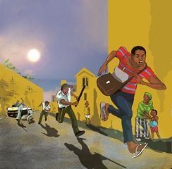 Adultos e crianças corriam de um lado para o outro. Os agentes da polícia camarária perseguiam-nos, os que tinham o azar de serem apanhados recebiam cacetadas, eram pisoteados e, de seguida, lançados como animais para o carro juntamente com as mercadorias. “O segredo para não ser espancado é não mostrar resistência”, diz Diamantino, que já foi castigado no passado.
