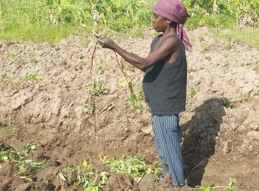 Eram 11 horas, mas ela disse que estava no local desde as cinco da manhã. “Estou a plantar folhas de abóbora e de batata-doce.