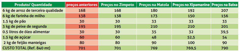 A realidade no país real é no entanto diferente. @Verdade continua a monitorar o preço dos produtos que compõem a cesta básica, base usada como referência para o estabelecimento dos salários mínimos no país, em diferentes locais de venda na cidade e província de Maputo e, relação à semana passada, produtos como arroz, feijão manteiga, peixe de segunda e óleo vegetal, registaram um aumento de preços (VEJA A TABELA COMPARATIVA), contrariando as informações do Governo.