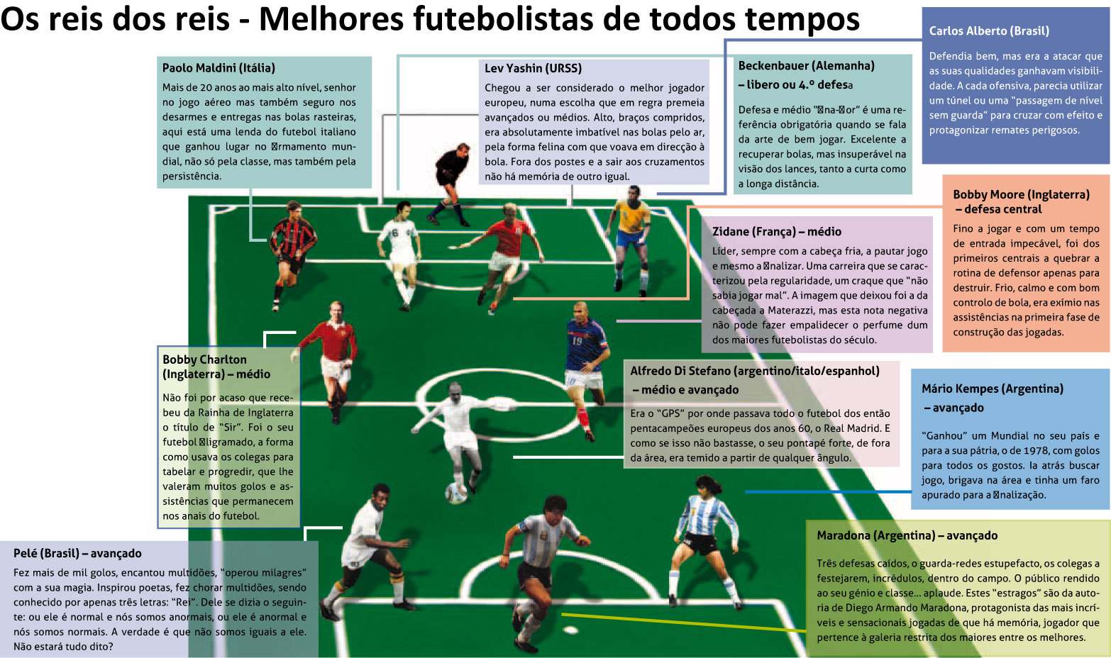 Daí que formar o melhor “onze” de todos os tempos, uma equipa que agrade a toda a gente, seja uma missão impossível. Porém, opinar sobre a matéria, na nossa óptica de amantes e observadores de há longos anos, é um exercício bonito e que “não paga imposto”. Atrevemo-nos portanto a conjecturar esta constelação de estrelas que, se fosse possível juntar, seria, na realidade quase imbatível.