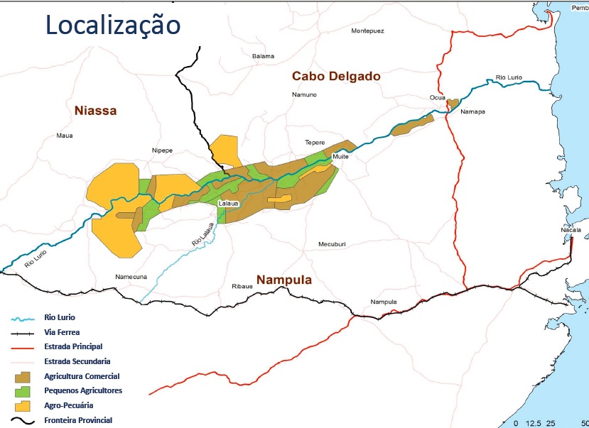Uma cópia da apresentação corporativa intitulada “resumo do projecto”, datada de 2014 (*), identifica 240 000 hectares de terra ao longo das margens férteis do rio Lúrio cruzando três províncias para o desenvolvimento – Cabo Delgado (18%), Niassa (25%) e Nampula (57%). Estima-se que vivam nas terras ricas 500 mil pessoas das quais cerca de 100 mil, a maioria camponeses, poderão ser desalojadas se o projecto – que prevê grandes machambas de cultivo industrial, barragens e outras infra-estruturas, como canais – for adiante sem a consulta pública adequada. Os críticos consultados defendem que um país como Moçambique precisa desesperadamente de infra-estruturas deste género. Mas a quem servirão essas infra-estruturas? Quem está por detrás do projecto? Se centenas de milhares de pessoas poderão ser seriamente afectadas pelo projecto e cerca de 100 mil desalojadas, porque a estrutura corporativa não mostra com clareza os verdadeiros beneficiários deste projecto lucrativo?