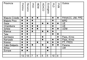 Partidos e coligações concorrendo em alguns ou todos os círculos Partidos Políticos: