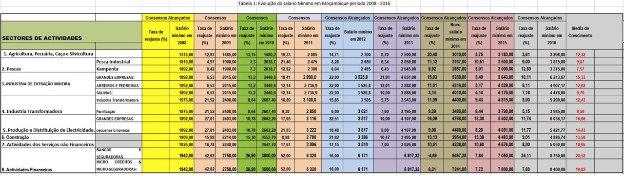 Teve inicio na semana finda a discussão da revisão(ou não) do salário mínimo para os trabalhadores moçambicanos. Os patrões deixaram claro não há espaço para aumentos, “vemo-nos numa situação de ter que envidar esforços para a sobrevivência das empresas e dos postos de trabalho”. Os sindicatos sonham com aumentos inéditos, “Gostaríamos de recordar aos parceiros sociais que no passado, quando a inflação atingisse dois dígitos, o reajustamento dos salários mínimos era feito duas vezes ao ano”. O Governo insiste na retórica que está a criar centenas de milhares de postos de trabalho que ninguém consegue vislumbrar. A verdade é que o salário mínimo, que nunca cobriu as denominadas despesas básicas em Moçambique, está hoje abaixo do limiar da pobreza.