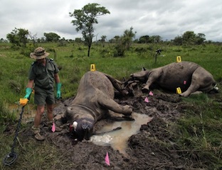 A reportagem refere que os Hawks, uma unidade especial da Polícia sul-africana, acreditam que as equipas predatórias são apenas uma pequena parte de uma rede muito mais ampla que inclui guardas florestais corruptos, funcionários do parque, agentes da Polícia, caçadores profissionais e pilotos. Os guardas de caça são subornados para monitorizar os movimentos das manadas de rinocerontes enquanto os veterinários fornecem M99, um anestésico. Políticos locais, organizadores de safaris, comerciantes de gado e agricultores brancos actuam como intermediários.