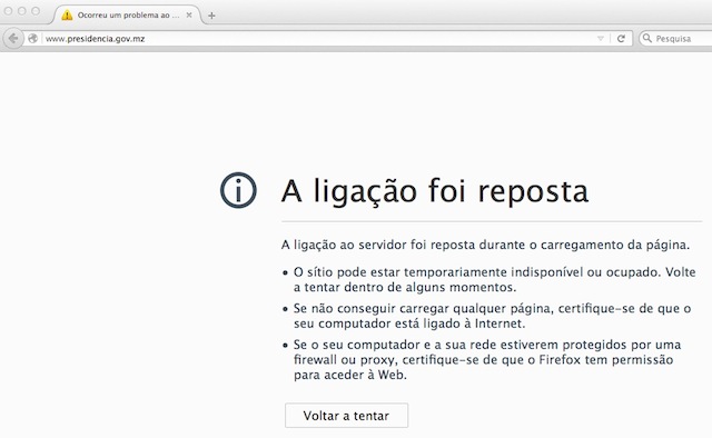 A verdade é que há mais de uma semana o sítio http://www.presidencia.gov.mz/ está inacessível.