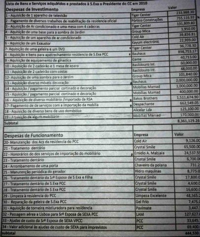 Na sua edição da semana passada, o semanário ‘Savana’ publicou uma lista de bens e serviços adquiridos ilegalmente por Mondlane para benefício próprio e à família. O custo totaliza cerca de 8,8 milhões de meticais, e dentre eles constam chorudas quantias em dinheiro (2,1 milhões) gastos na importação de mobiliário a partir da África do Sul. Outro mobiliário e móveis de decoração adquiridos localmente custaram mais de 3,5 milhões de meticais.